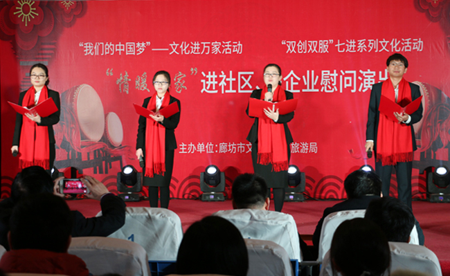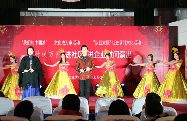 2019年2月19日上午,廊坊市伴著瑞雪迎春的兆頭和上元節(jié)張燈結(jié)彩的情景。中太大廈二樓多功能廳燈光璀璨,歡聲笑語,廊坊市文化廣電和旅游局組織的“我們的中國夢”文化進(jìn)萬家系列活動在此舉辦,這也是這支文藝小分隊進(jìn)企業(yè)、進(jìn)社區(qū)開展“情暖萬家”慰問演出的第十場演出。市文廣旅局副局長李永生、中太投資控股集團(tuán)監(jiān)事會主席吉士俊出席活動并分別致辭,中太系統(tǒng)在廊各板塊的部分員工觀看了慰問演出。