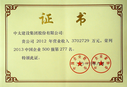 中國(guó)企業(yè)500強(qiáng)證書(shū)